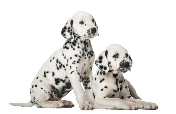 Speaking of spots, Dalmatians’ dotted looks are due to the interaction of several different genes, as the theory goes. They aren’t born spotted; they're pure white and develop spots starting at about 2 weeks of age. (Fun fact: You’ll never see two Dalmatians with the same spot pattern—each coat is unique!)