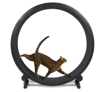 While there is so much to discuss regarding feline obesity management and prevention one more thing to consider is to keep cats moving. Our indoor feline friends just do not typically move enough. (As I write this mine is sleeping next to me.) Any way to keep them moving is helpful. This may be as simple as picking them up and moving them from their favorite spot while giving them lots of attention and putting them as far away from it as possible. They will then have to walk back to their favorite spot to return to their slumber. It may also look like hiding those toys with their kibble in them and having them hunt them down. Playing with chase toys is always a good game too. I have also had some owners who have good luck with cat wheels which allow ambitious cats to run in the house and harness training allows the cats to go for walks outside.