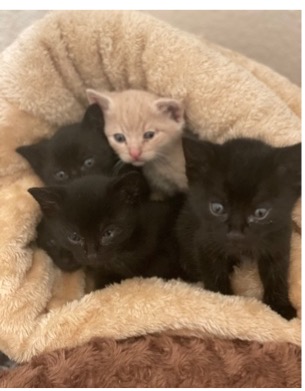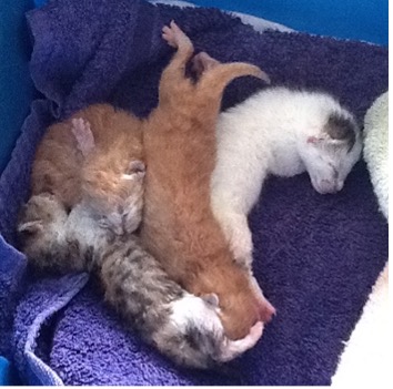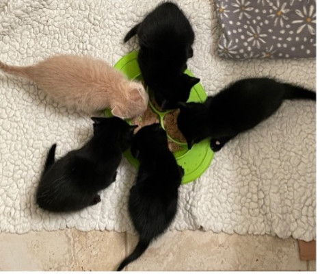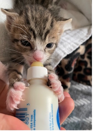 4. Provide proper nutrition – Always provide fresh water and food appropriate for their age (kitten food or kitten milk supplement). Very young kittens (under 3 weeks) cannot eat solid food & need appropriate kitten milk supplementation. Bottle-fed babies also must be warm before being fed as their digestive system doesn’t work well when their body temperature is too cold. Keeping them warm with blankets, or a special warming disk can ensure they are ready to go at feeding time. Neonates (newborns) also require feedings often (as often as every 2-3 hours at first), so be sure that you can devote the appropriate time to these really young kittens; or ask for kittens that are slightly older and already eating solid food as they don’t need food nearly as often.