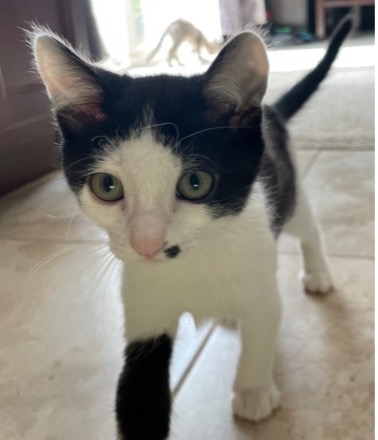 Image of one of my many foster kittens in my backyard & Kitten Developmental Milestones by Dr. Wilson