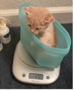 This can help to monitor the kittens’ weight as they grow (particularly if there are quite a few kittens). Having numbers to compare to previous weights will help you see if they are not gaining weight. Kittens should initially gain ~ 10 g/day. |