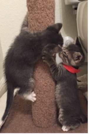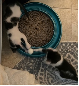 7. Playtime is important too – Creating appropriate time for the kittens to play is important as well. Play allows them to develop the skills they need as adults and figure out their environment as well. Helping cats play appropriately with toys that engage them in different ways helps them learn the cat skills they need. Climbing (trees), scooping (fish), hunting, and chasing (prey) are all types of play or behaviors that cats enjoy engaging in. So finding ways to provide an avenue for growing kittens to do these things will allow them to become their best selves!