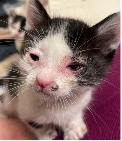 9. Monitor their health and maintain communication – Keep a close eye on the kitten(s) health and be sure to call the veterinarian or rescue/shelter liaison with questions or concerns. Common emergency situations that should be communicated immediately include; ataxia (weird/drunk walking), low energy, poor appetite, not eating or drinking at all, sudden limping, difficulty with urination or defecation, vomiting or diarrhea, and runny nose/eyes, coughing or sneezing to name a few. If concerned about anything, it is better to reach out with questions. It is essential to growing kittens that their health is maintained, and often orphan babies can come to you looking very sick. They may need medications to ensure they get better and have a chance at a good kitty future. With close monitoring from you, the foster parent, and timely treatment you can turn a sad-looking kitten into a healthy happy little furball. Like the pictures of my kitten Crawford (pictures to the right) when he first came to me as a foster (above) and now that I’ve failed in the best way (below)Crawford in his now permanent home, my home!