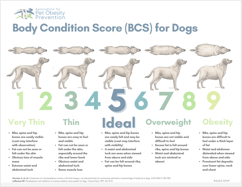 I pulled up a Body Condition Score (BCS) chart. We walked through it together and quickly realized the truth: her puppy was a perfect 4 out of 9, an ideal score for a growing, lean puppy. Not underweight, not overweight, but just right.