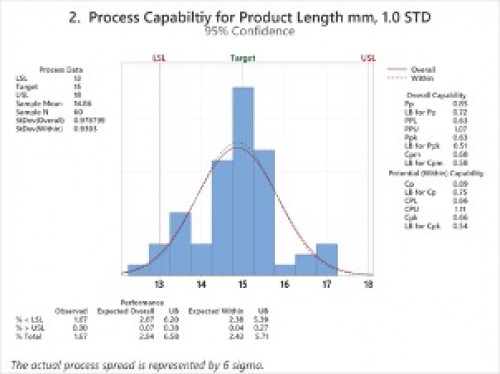 Both Process 1 and Process 2 are normally distributed and exhibit normal variation, and both have a good number of samples for some analysis at 60; however, Process 1 based on our specification limits of 13mm to 18mm for length, is expected to fail or be out of specification 24% of the time. In contrast, Process 2 is expected to fail or be out of specification only 3% of the time. Neither process is capable of meeting specifications 100% of the time. Still, Process 1 is going to significantly inhibit your yield and rework and success of the launch, where Process 2 is most likely to be acceptable rework or losses to your company and be reasonably successful with your consumers over time.